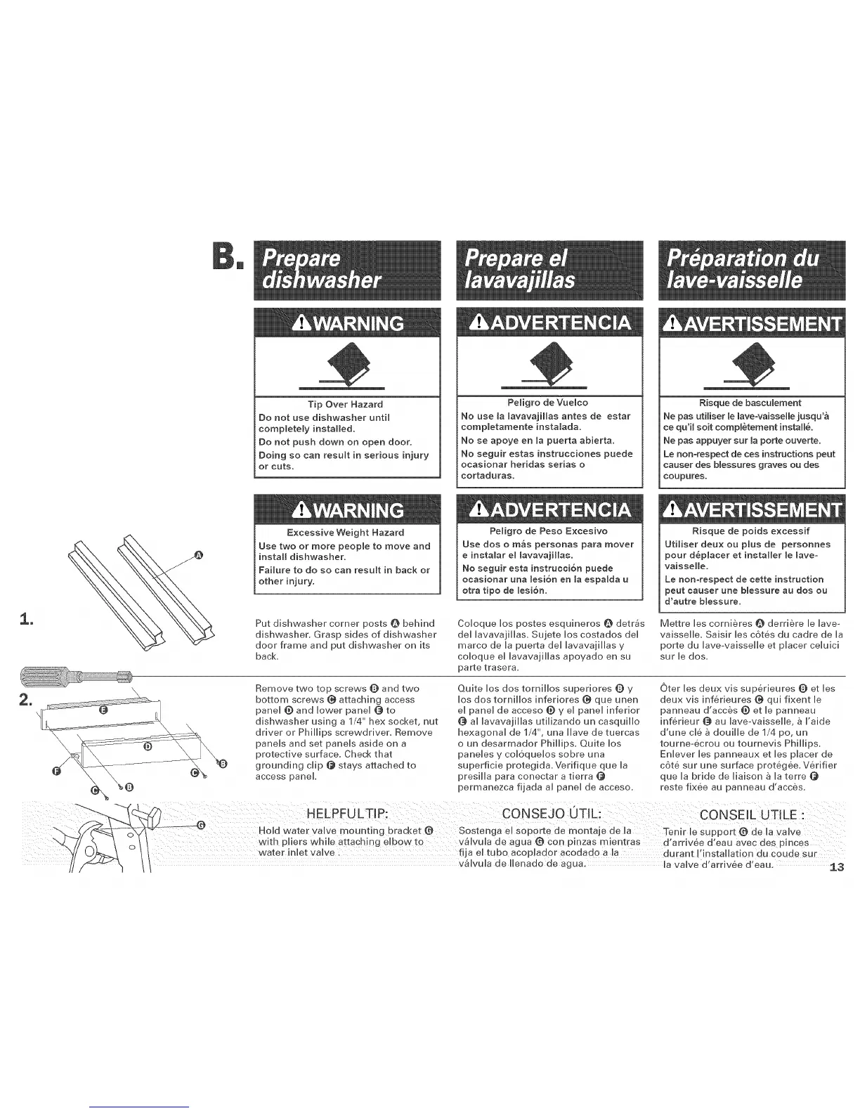 with pliers while attaching elbow to valvula de agua O con pinzas mientras d'arriv6e d!eau avec des pinces