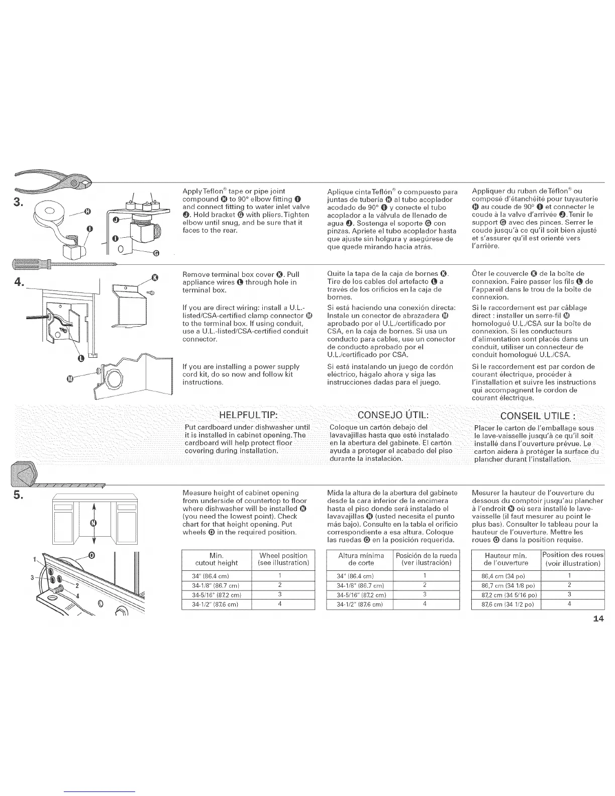 caraboard w he p protect f oor en a abertura de gab nete E cart6n instaHHe dans J'ouverture pr6vue. Le