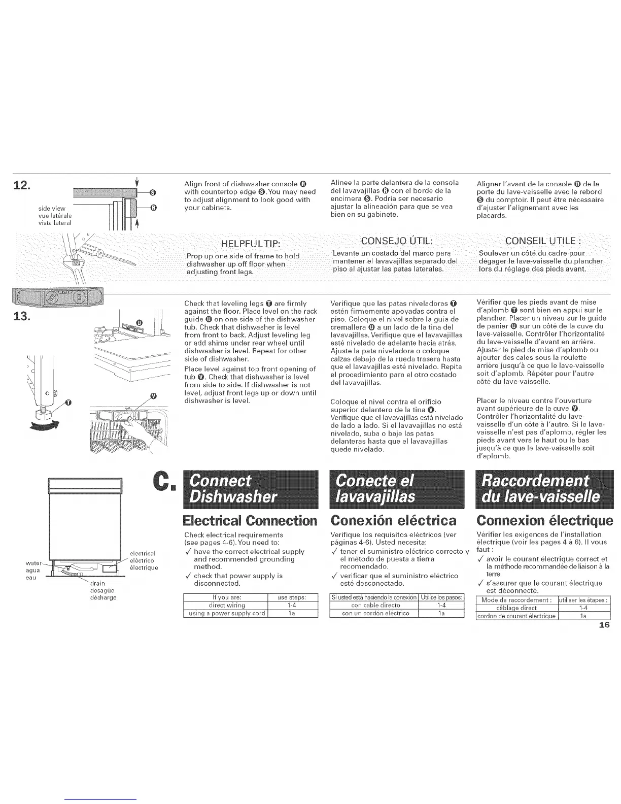 adjusting front legs piso a! ajustar las patas laterales, lots du Feg!age des pieds avant,