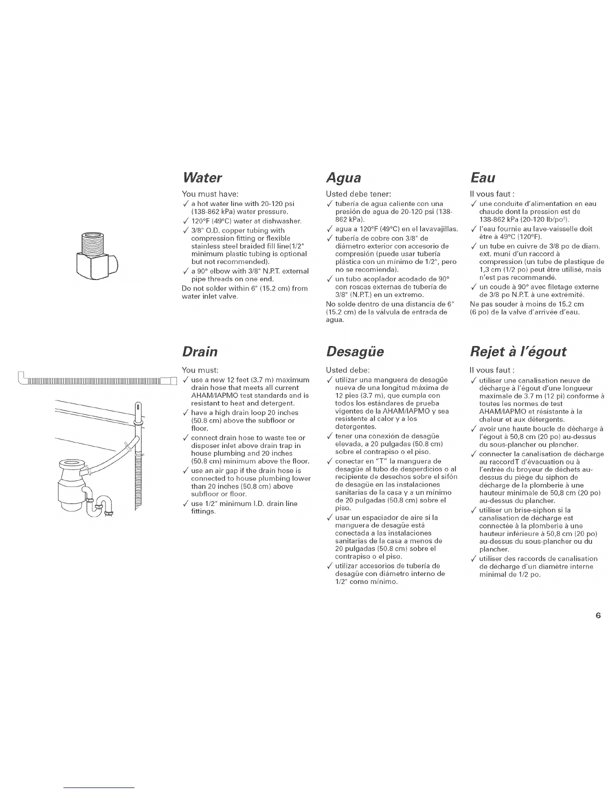 7' I'eau fournie au lave-vaisselle doit