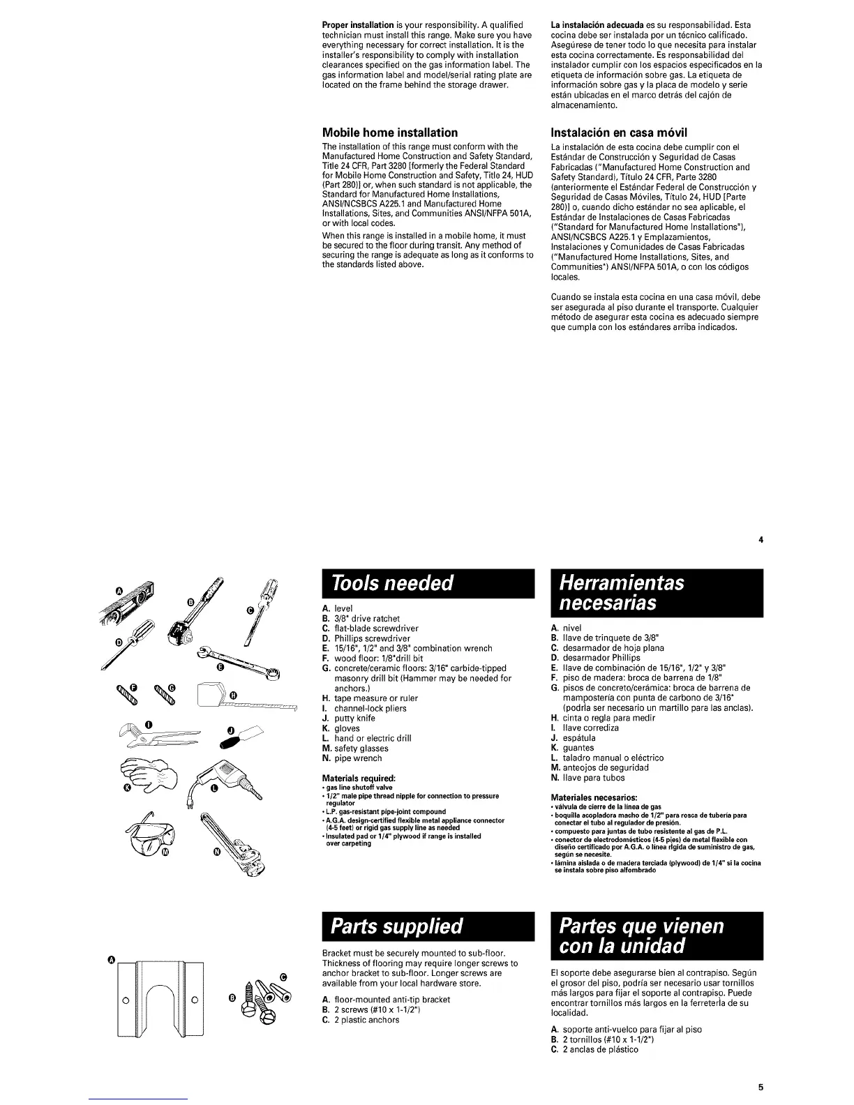 When this range is installedin a mobile home, it must