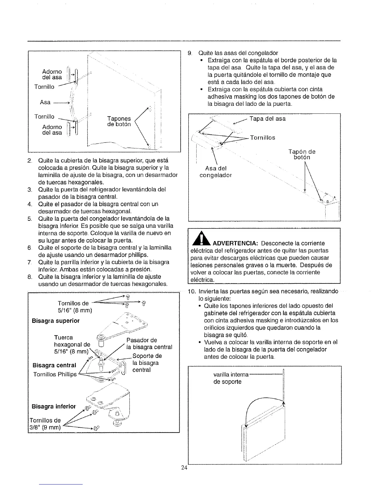 2. Quite la cubierta de ta bisagra superior, que est,_