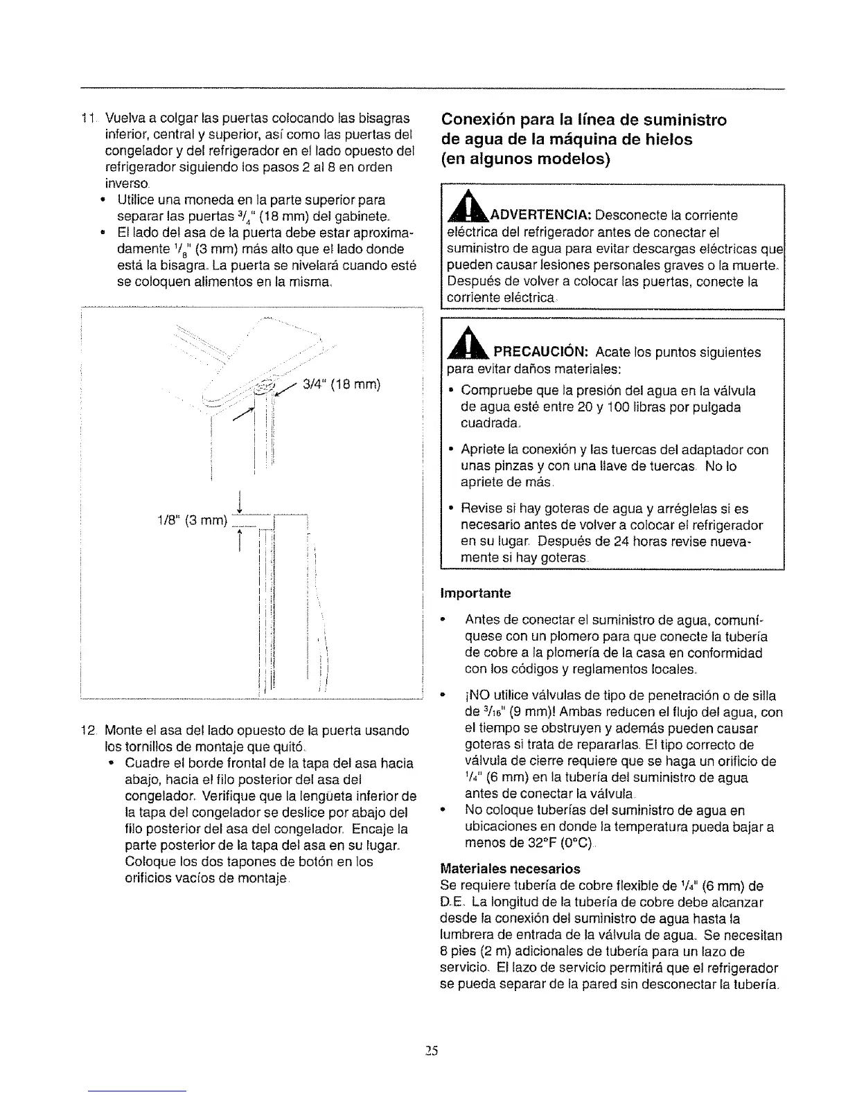 ,, No coloque tuber[as del suministro de agua en