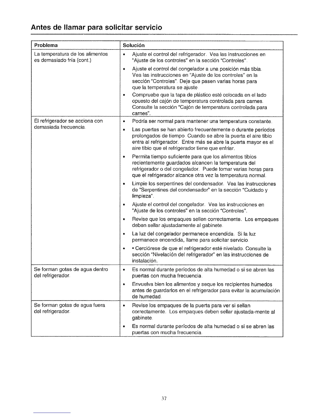 = Ajuste el control del refrigerador. Vea las instrucciones en