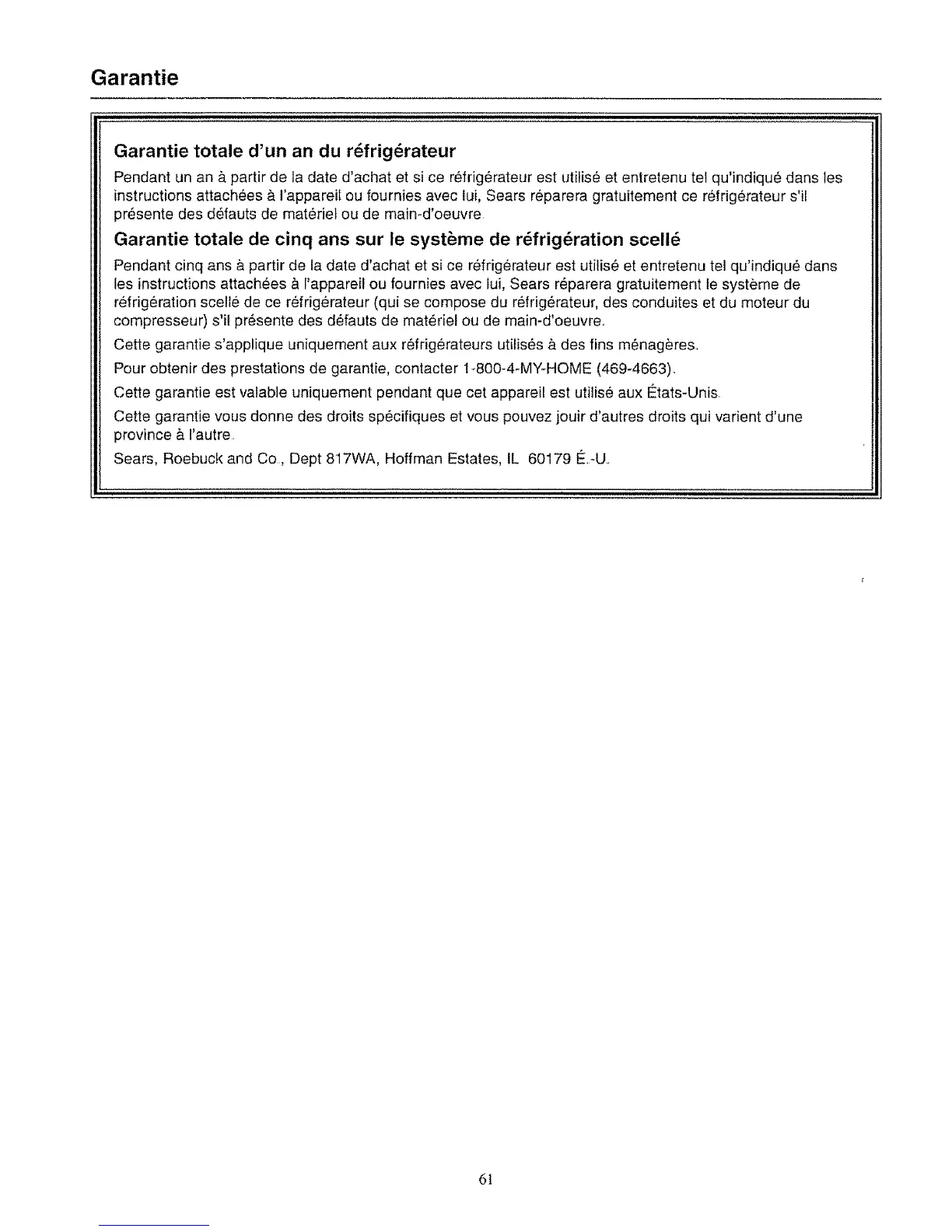 Garantie totale de cinq ans sur le syst_me de r_frig6ration scell_