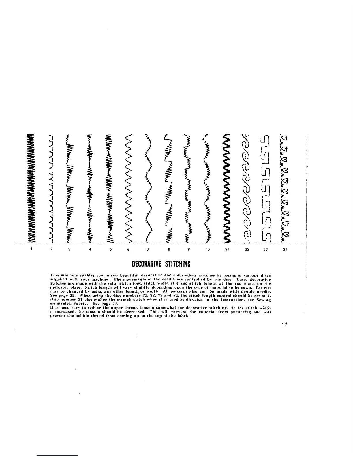 See page 25. When using the disc numbers 2]. 22, 23 and 24, the stitch length control should be set at 4,