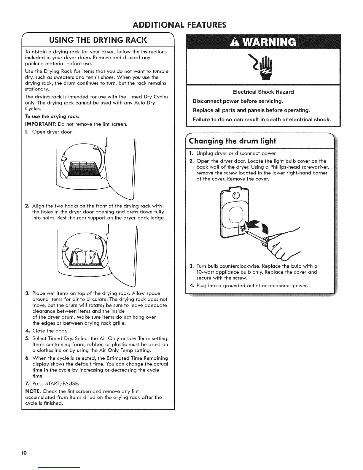 drying rack, the drum continues to turn, but the rack remains