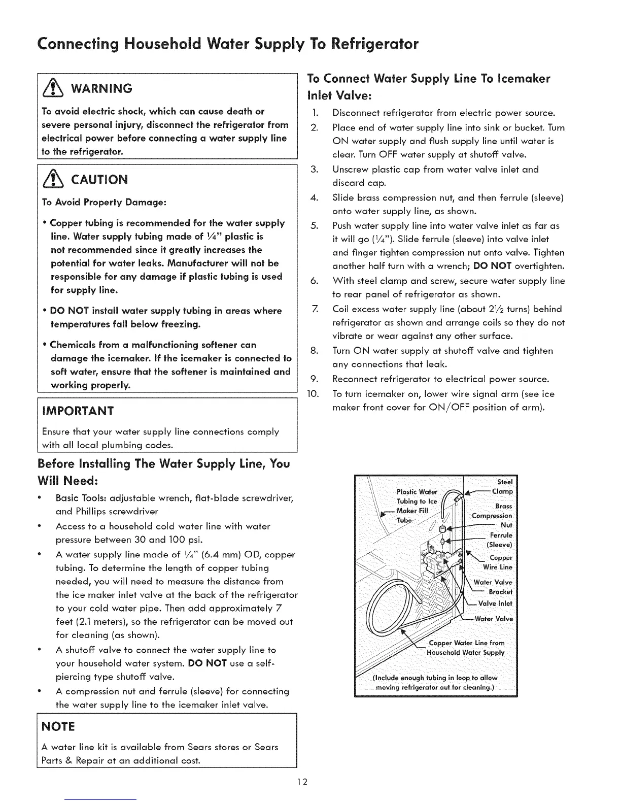 A water line kit is available from Sears stores or Sears