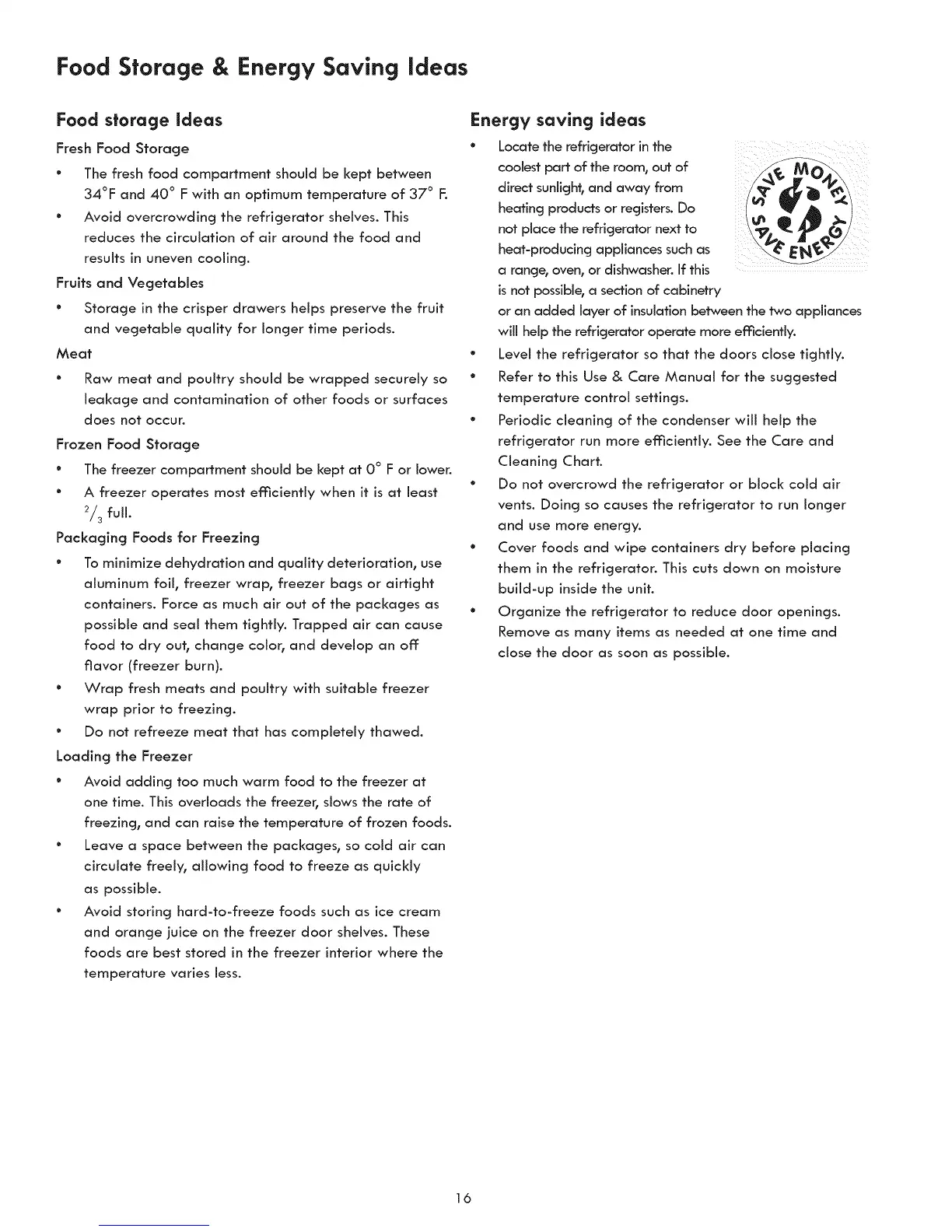 ° Organize the refrigerator to reduce door openings.