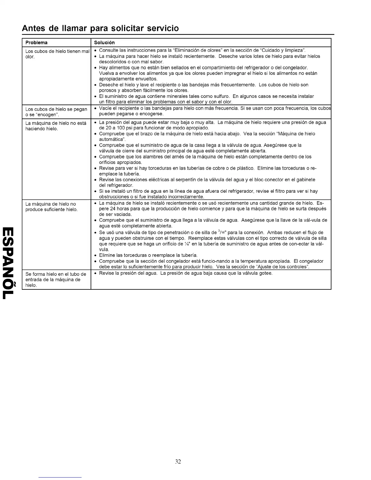 La m&quina de hielo se instal6 recientemente o se us6 recientemente una cantidad grande de hielo. Es-