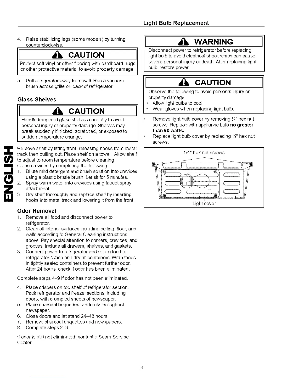 screws. Replace with appliance bulb no greater