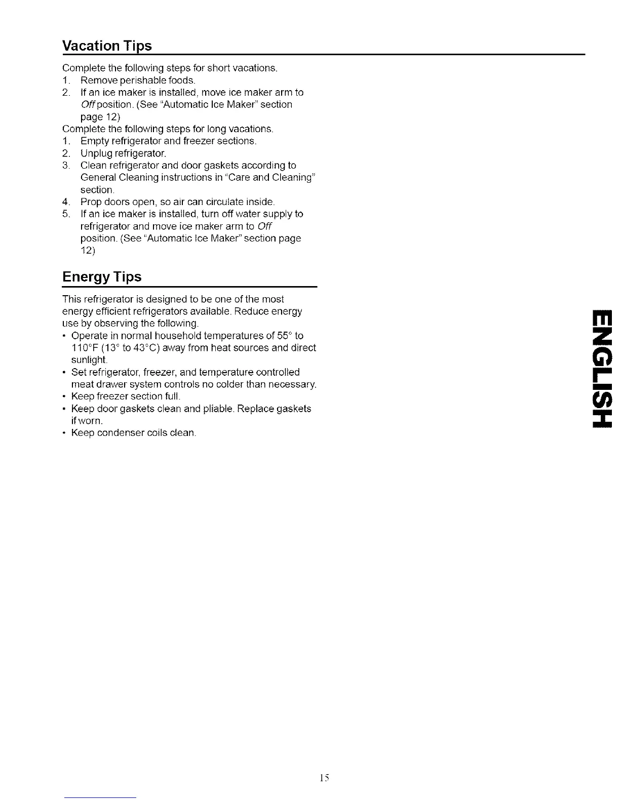 position. (See "Automatic Ice Maker" section page