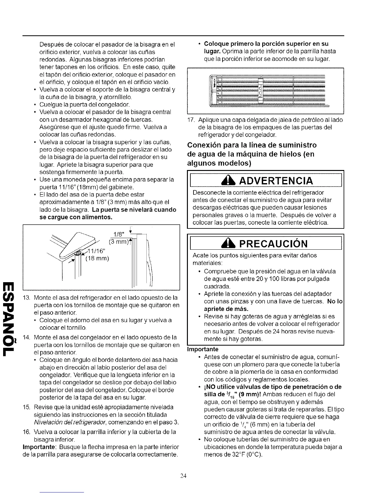 Nivelaci6n delrefrigerador, comenzando en eI paso 3.