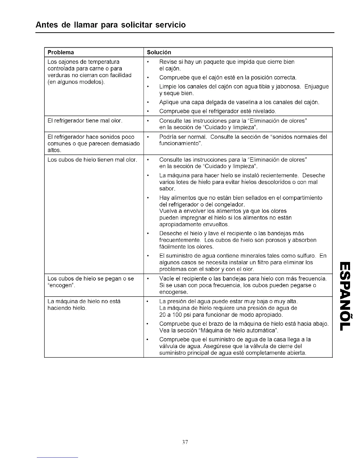 Consulte Ias instrucciones para la "Eliminacidn de olores"