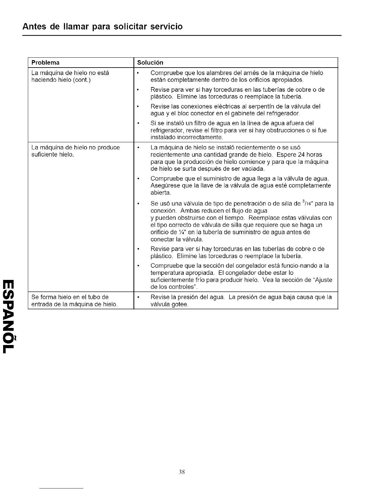 Compruebe que Ios alambres del arn6s de la maquina de hielo