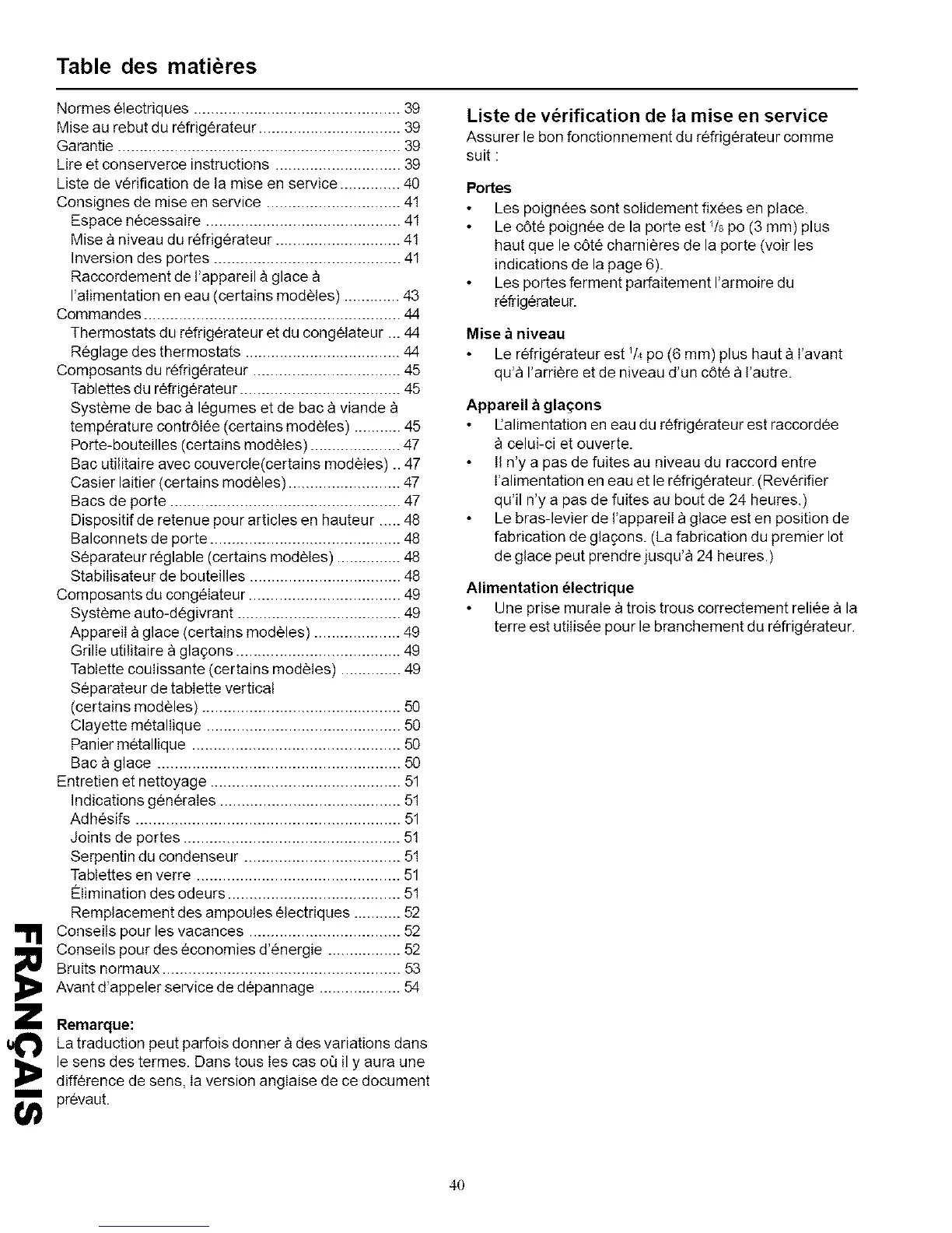 I_alimentation en eau et le refrigerateur. (Reverifier