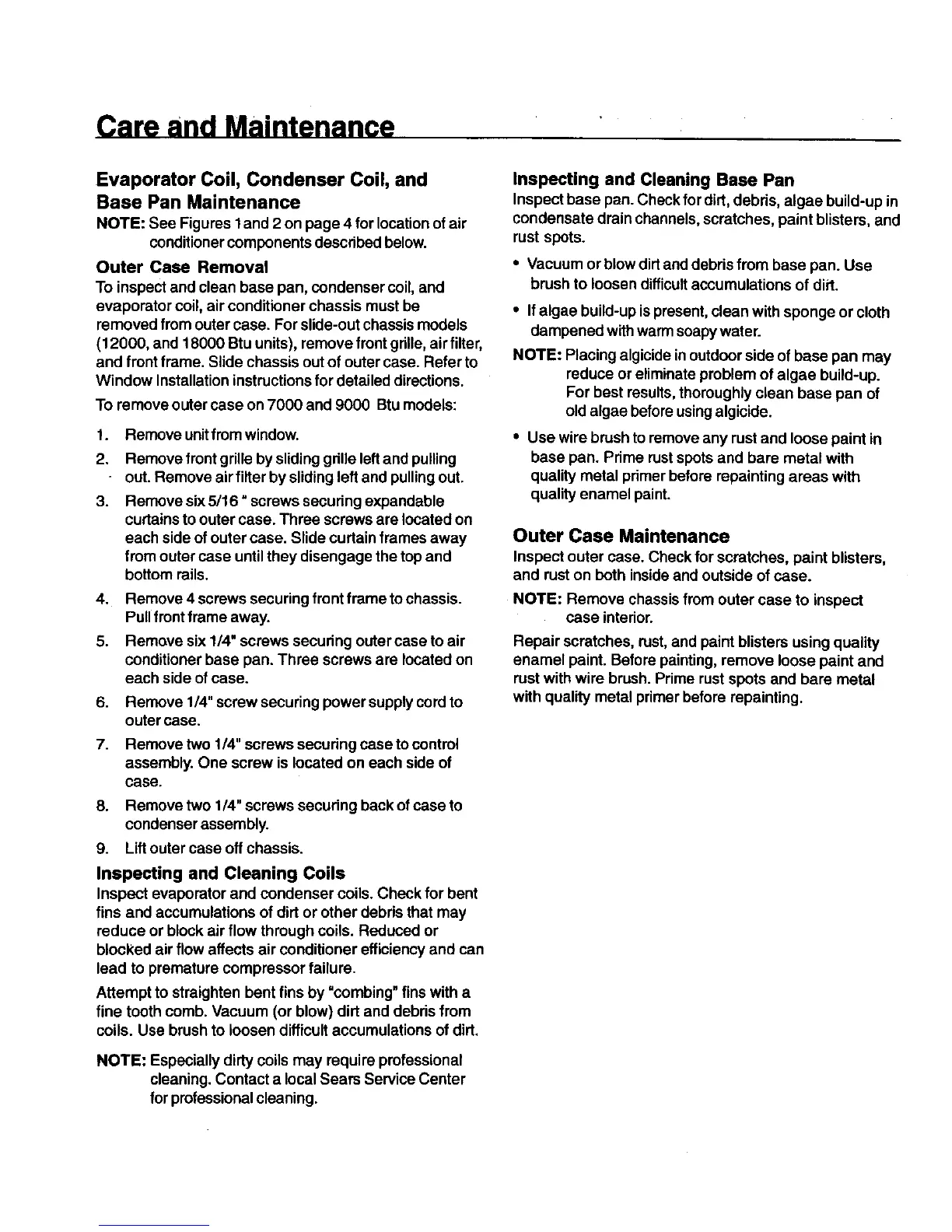 (12000, and 18000 Btu units), remove frontgrille, air filter,