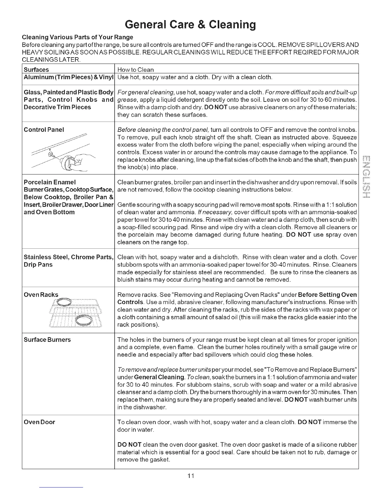 under General Cleaning. To clean, soakthe burners ina 1:1 solution of ammonia and water
