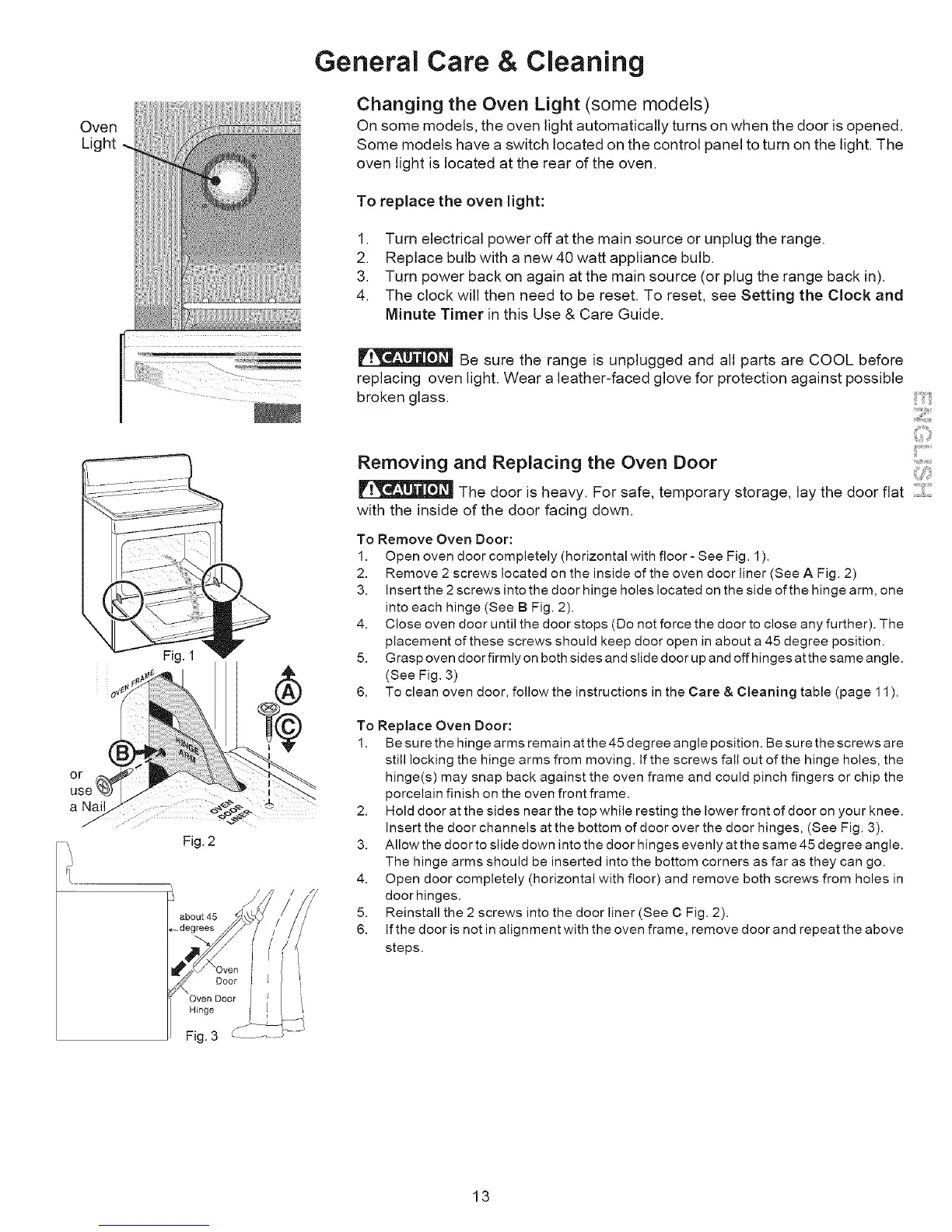 1. Open oven door completely (horizontal with floor- See Fig. 1).