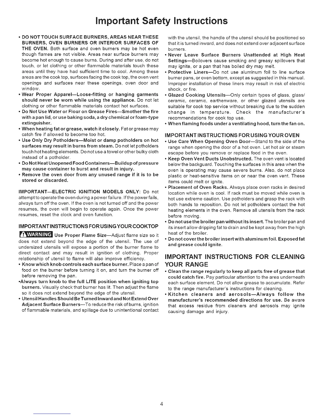IMPORTANT--ELECTRIC IGNITION MODELS ONLY: Do not
