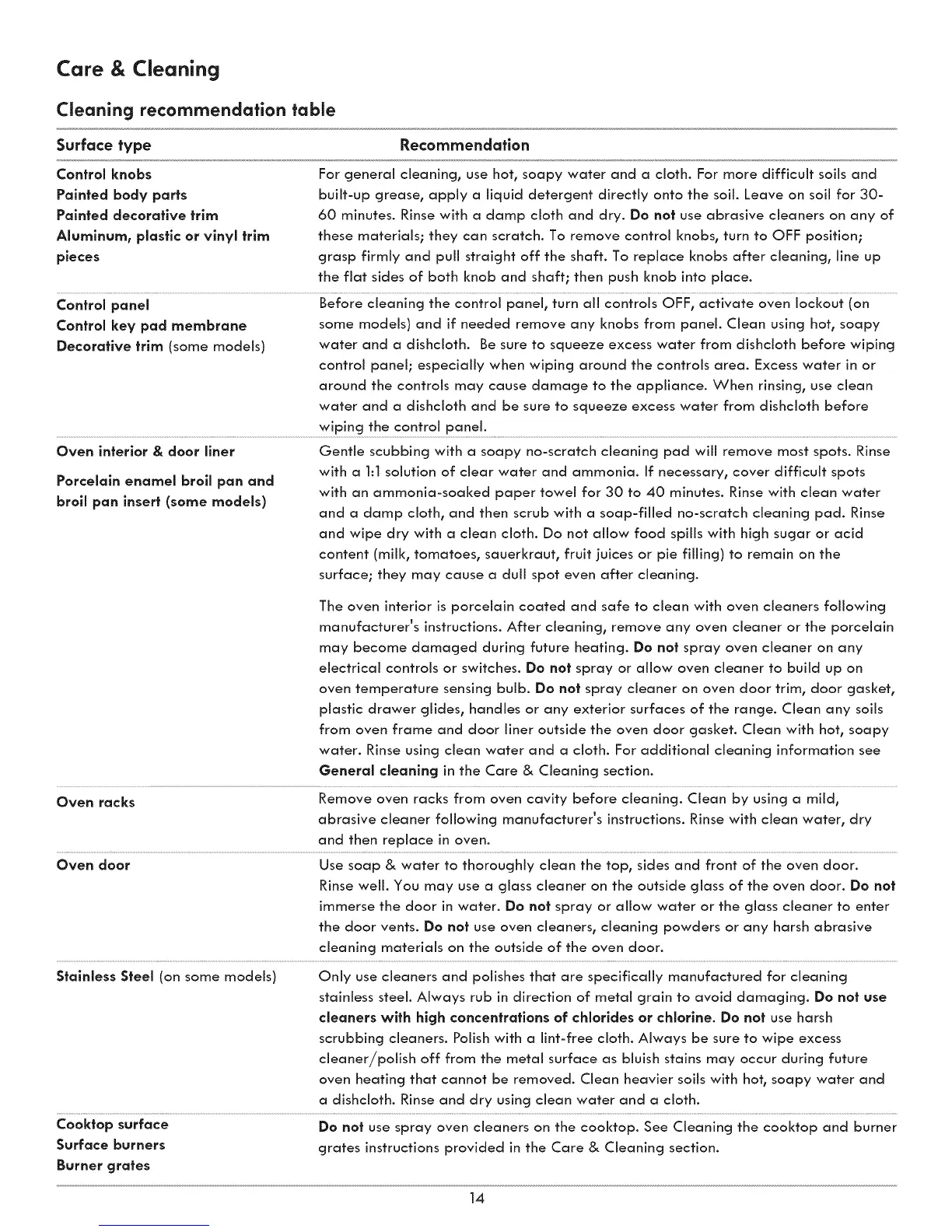 Stalnless Steel (on some models) Only use cleaners and polishes that are specifically manufactured for cleaning