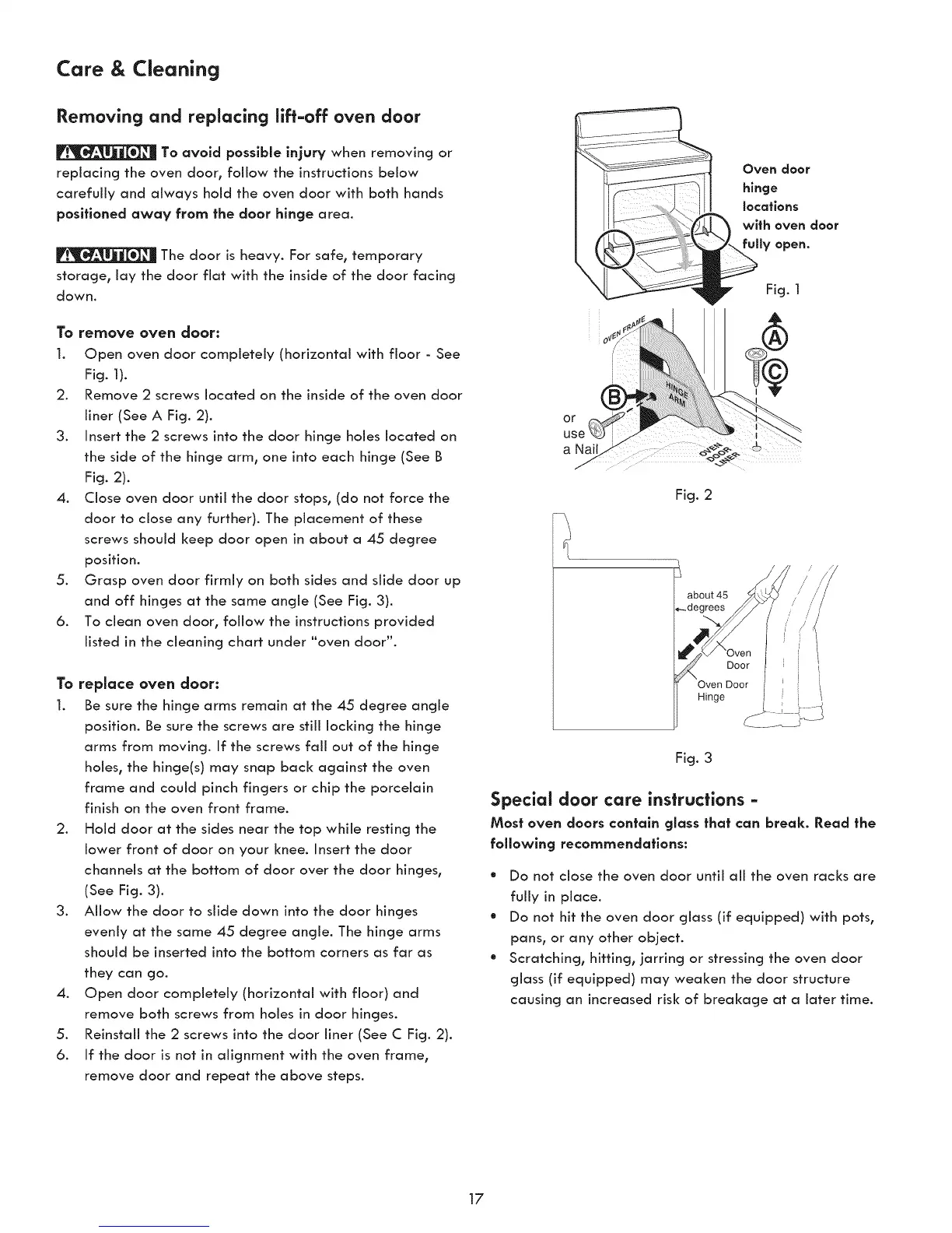 holes0 the hinge(s) may snap back against the oven