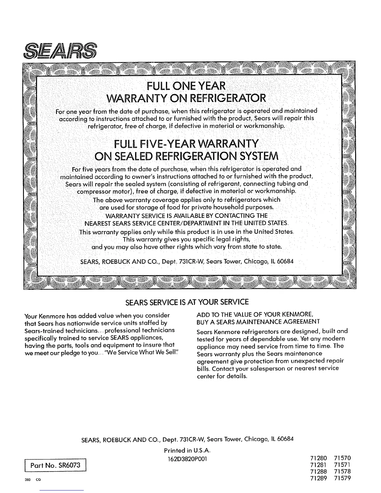 SEARS, ROEBUCK AND CO., Dept. 731CR-W, Sears Tower, Chicago, 1L60684