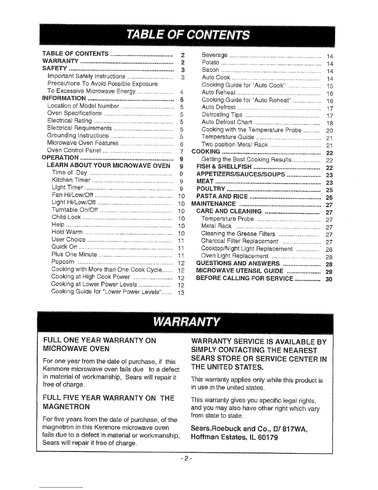 MICROWAVE UTENSIL GUIDE .................... 2g