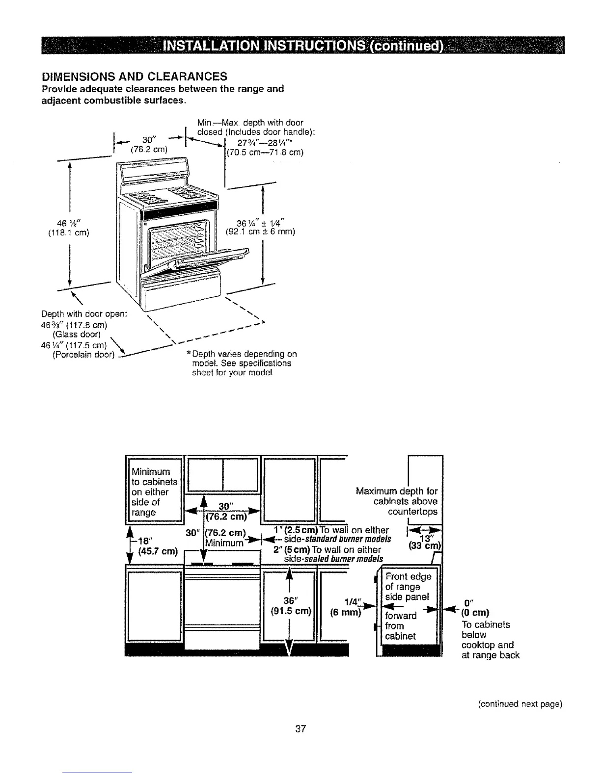 Provide adequate clearances between the range and