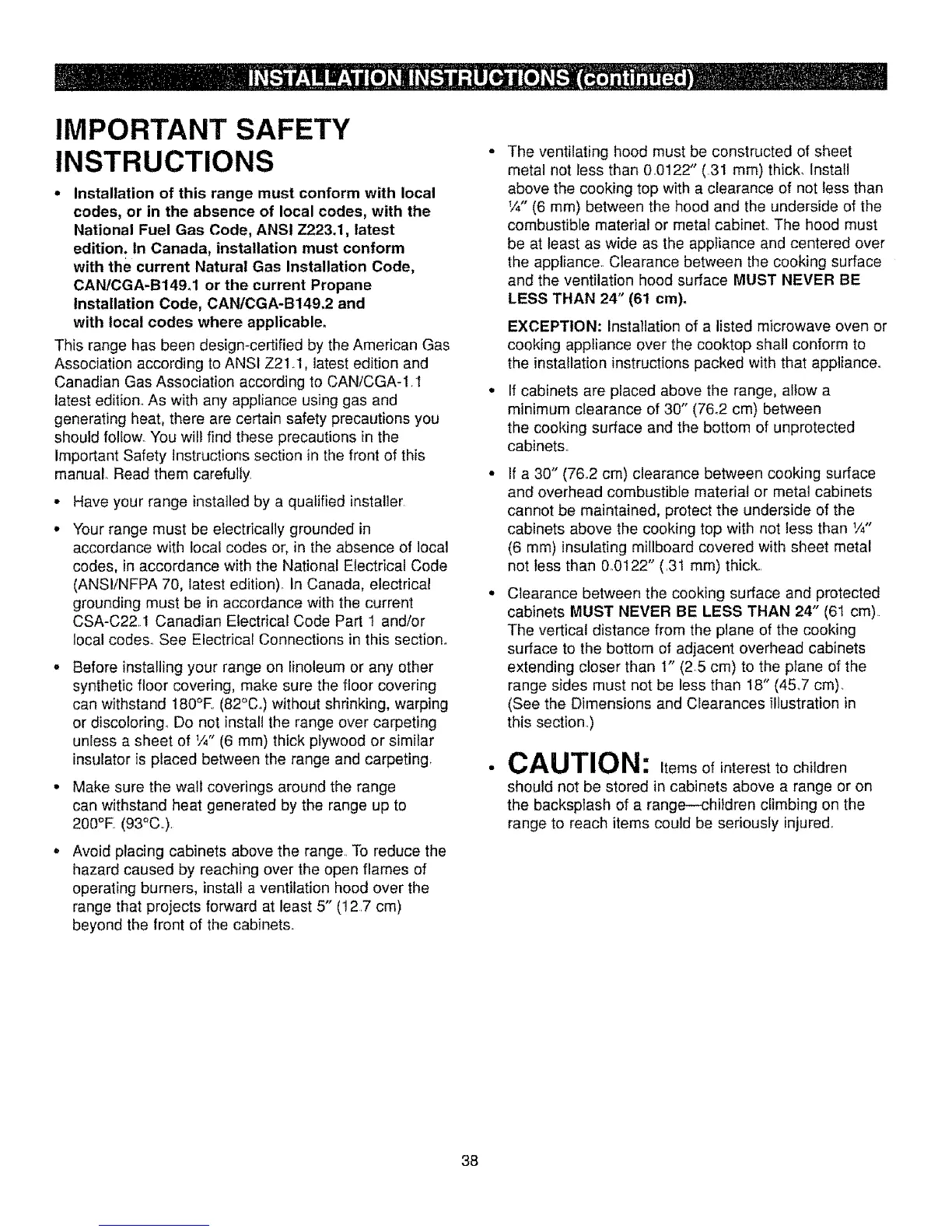 cabinets MUST NEVER BE LESS THAN 24" (61 cm)