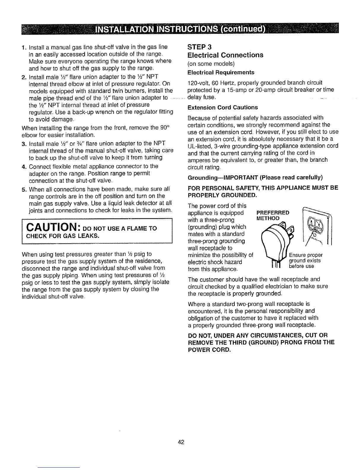 and how to shut off the gas supply to the range.