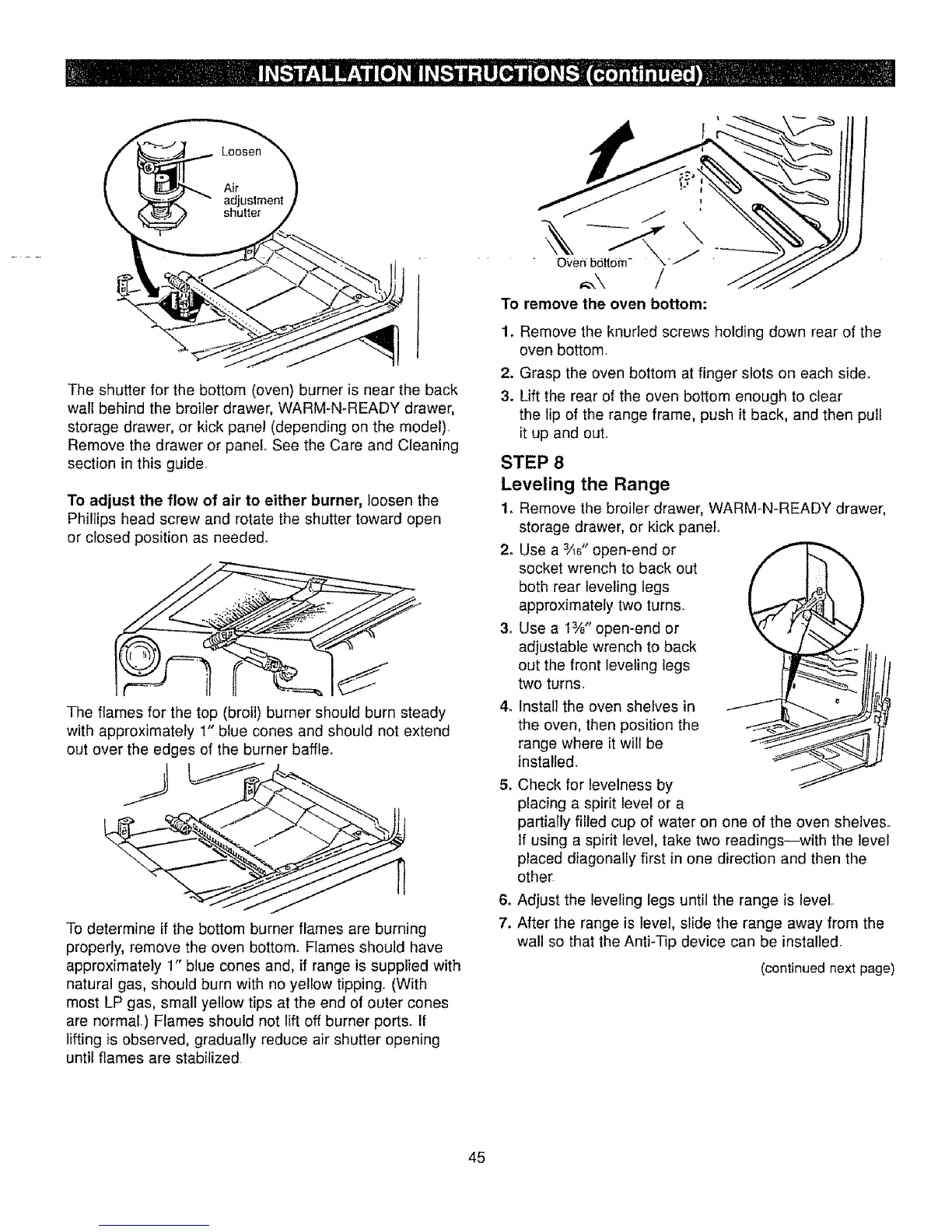 properly, remove the oven bottom. Flames should have