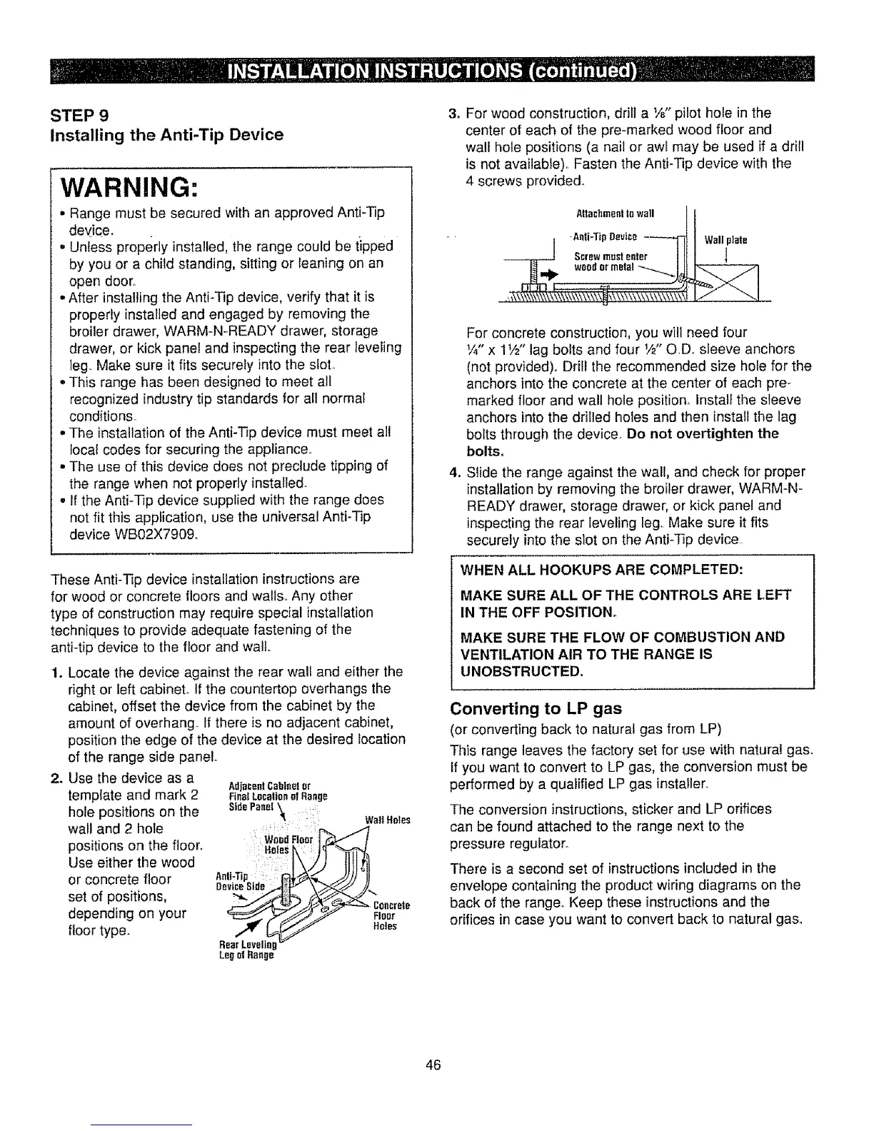. If the Anti-Tip device supplied with the range does