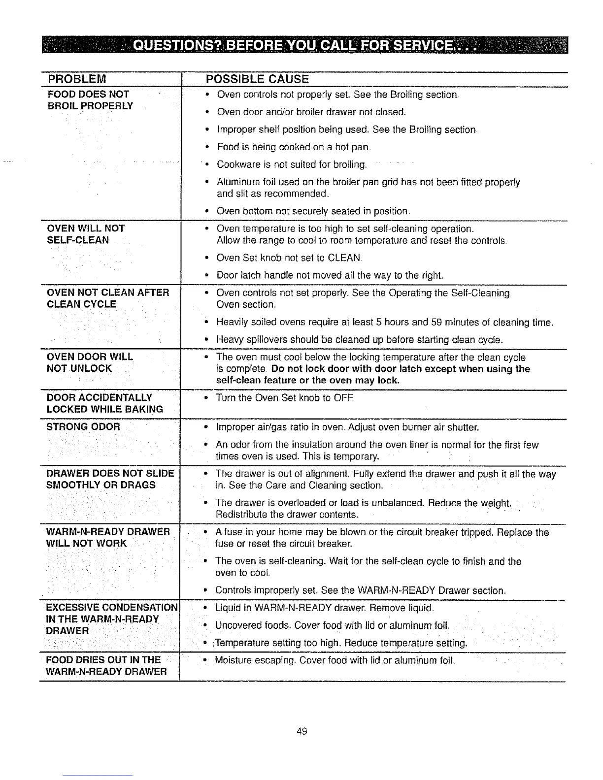 Controls improperly set See the WARM-N-READY Drawer section.