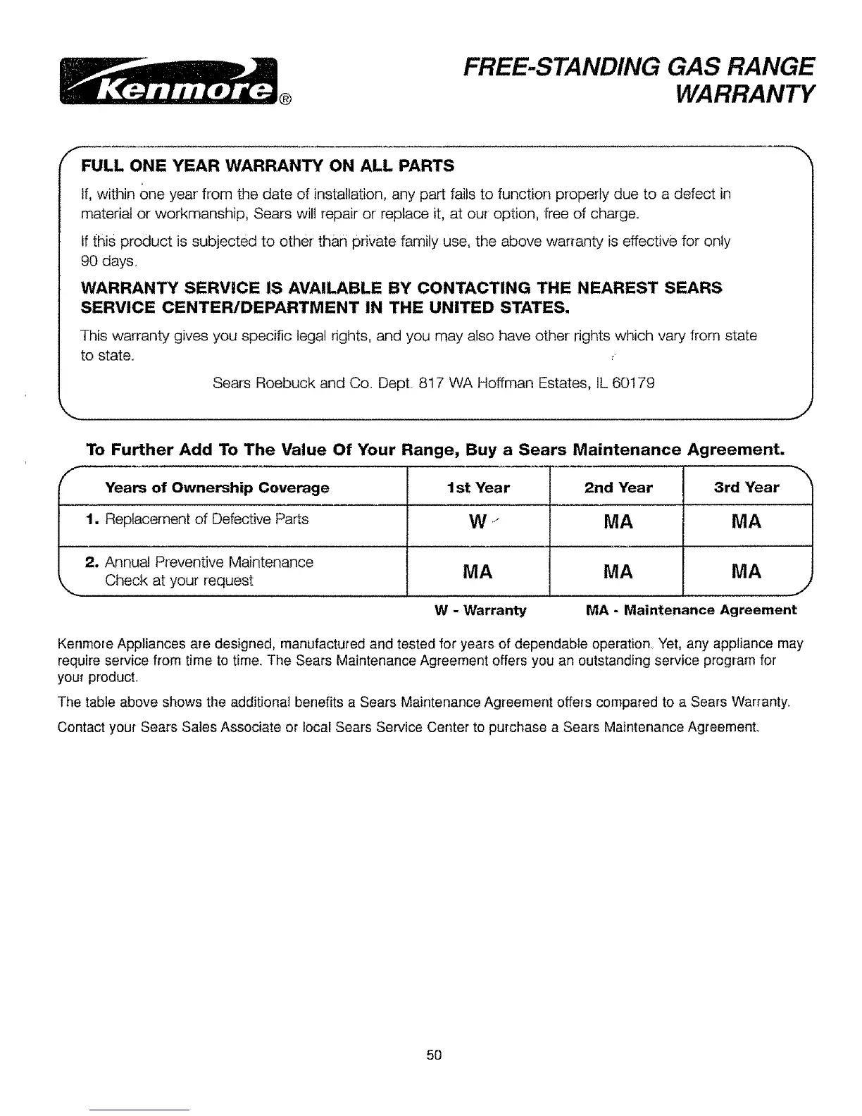To Further Add To The Value Of Your Range, Buy a Sears Maintenance Agreement,