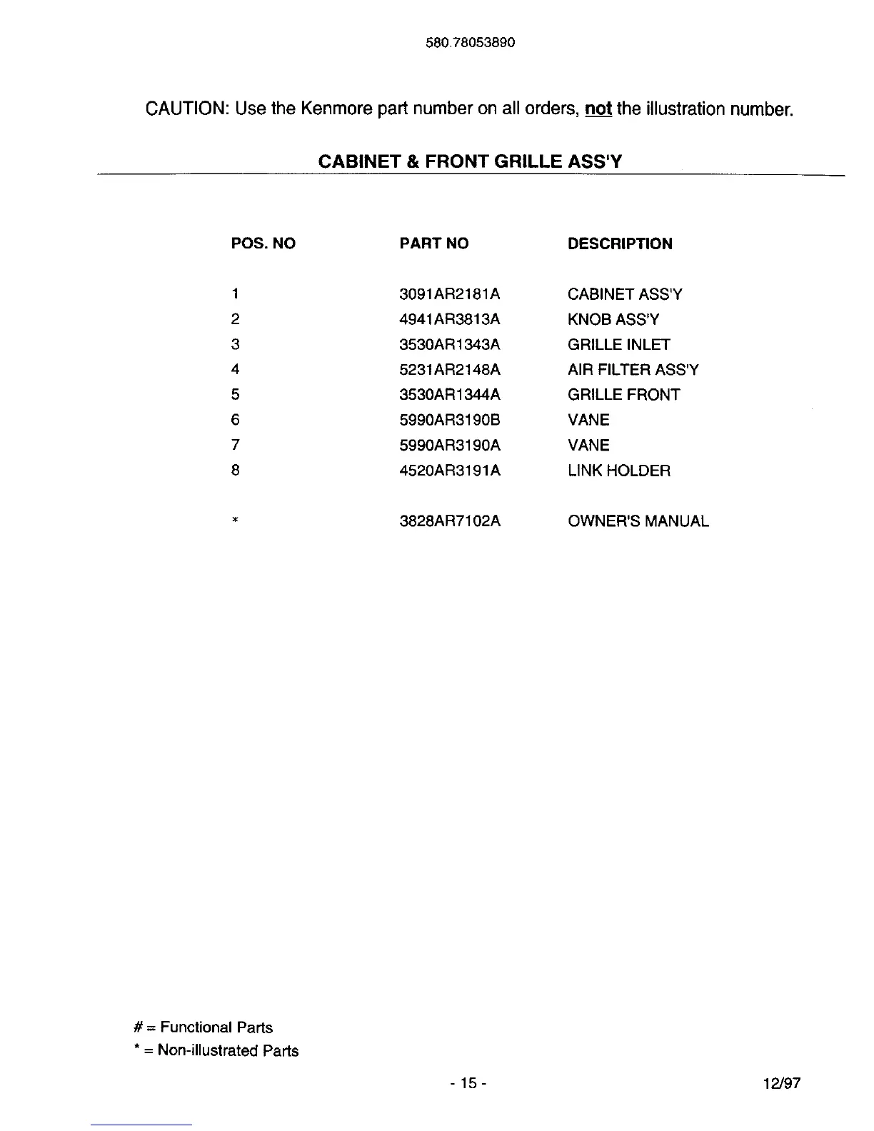 CAUTION: Use the Kenmore part number on all orders, not the illustration number.