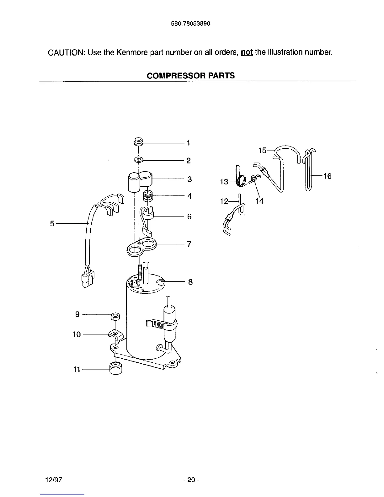 CAUTION: Use the Kenmore part number on all orders, no__ttthe illustration number.