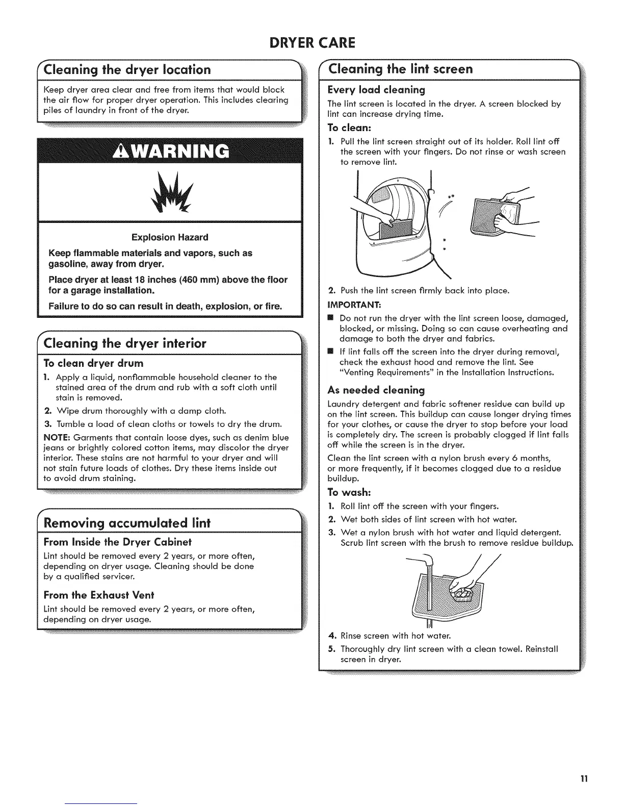 depending on dryer usage. Cleaning should be done