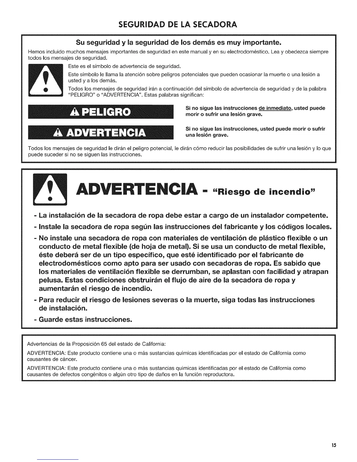- No instale una secadora de ropa con materiales de ventilaci6n de pl&stico flexible o un