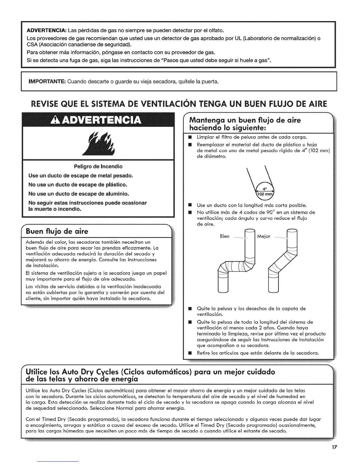 Kenmore 78102 - Tenga un Buen Flujo de Aire; Revise que el Sistema de Ventilack_)N
