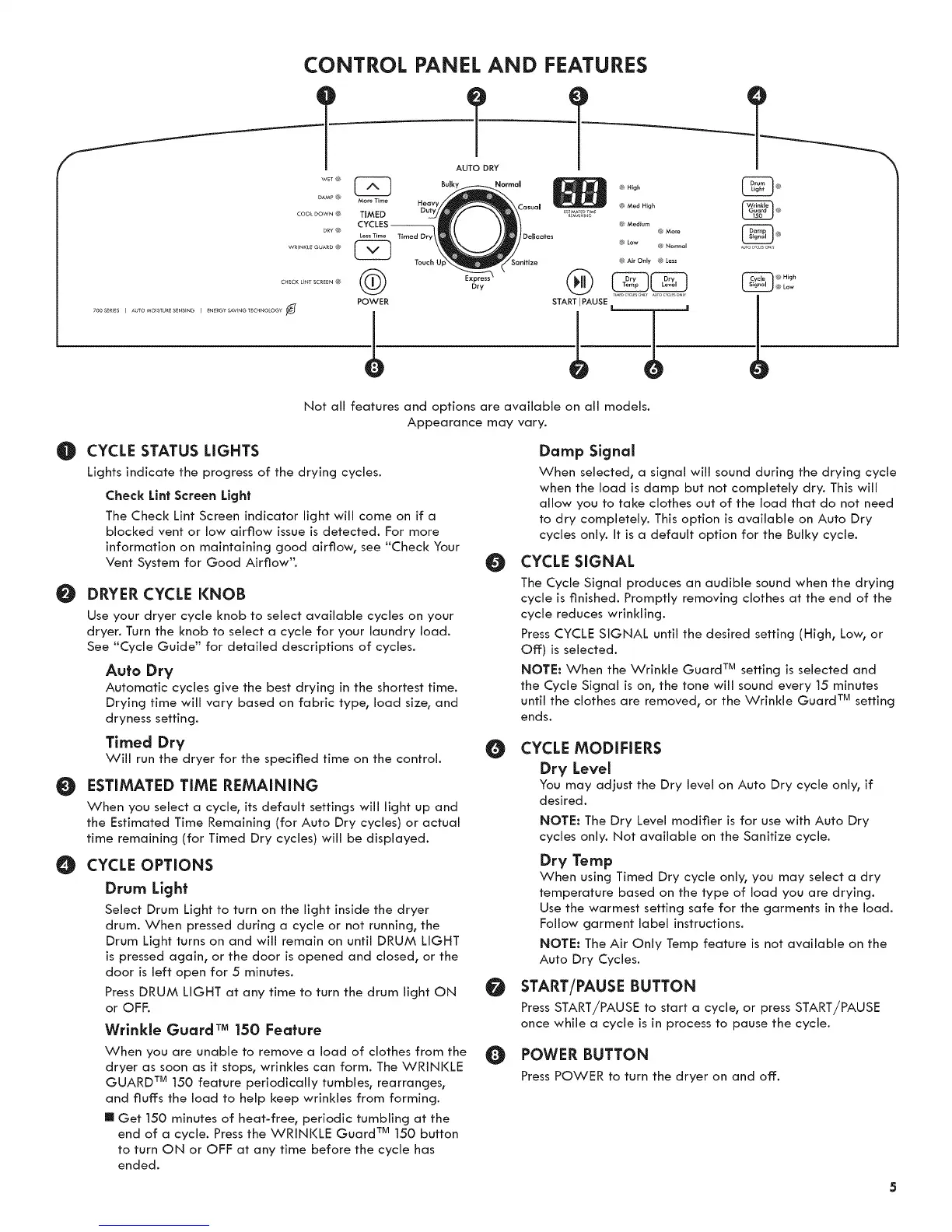 end of a cycle. Press the WRINKLE Guard TM 150 button