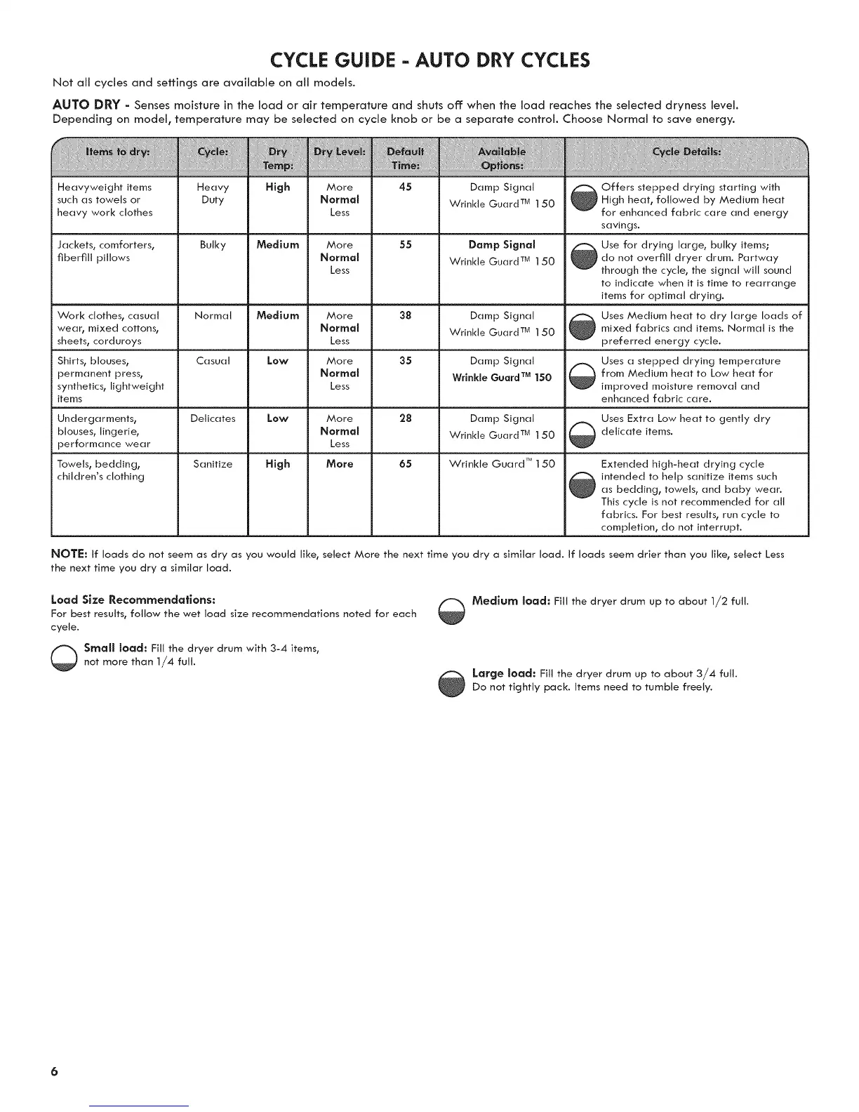fiberfill pillows Normal Wrinkle Guard TM 150 _ do not overfill dryer drum. Partway