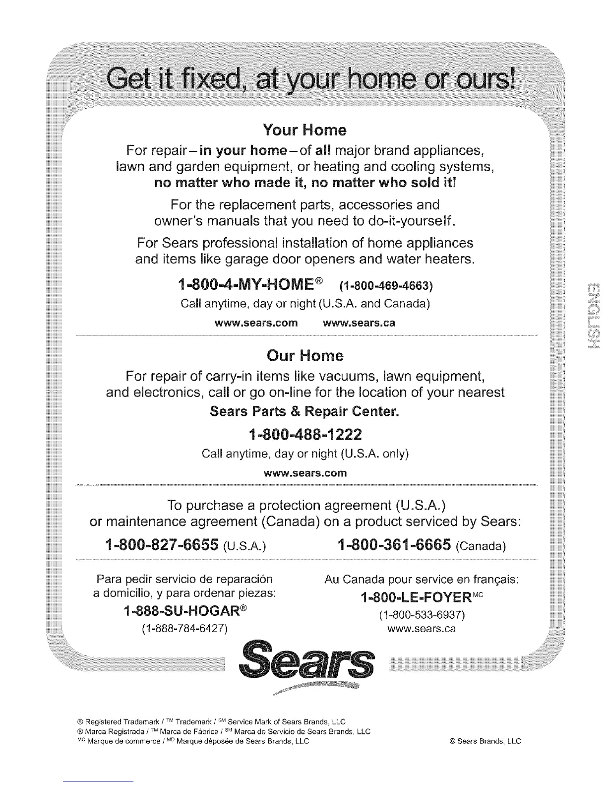 ® Marca Registrada / TMMarca de Fabrica / SMMarca de Servicio de Sears Brands, LLC
