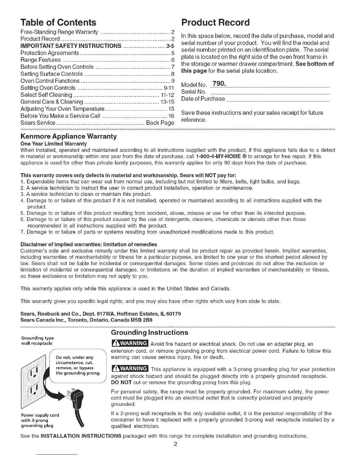 law. Sears shall not be liable for incidental or consequential damages. Some states and provinces do not allow the exclusion or