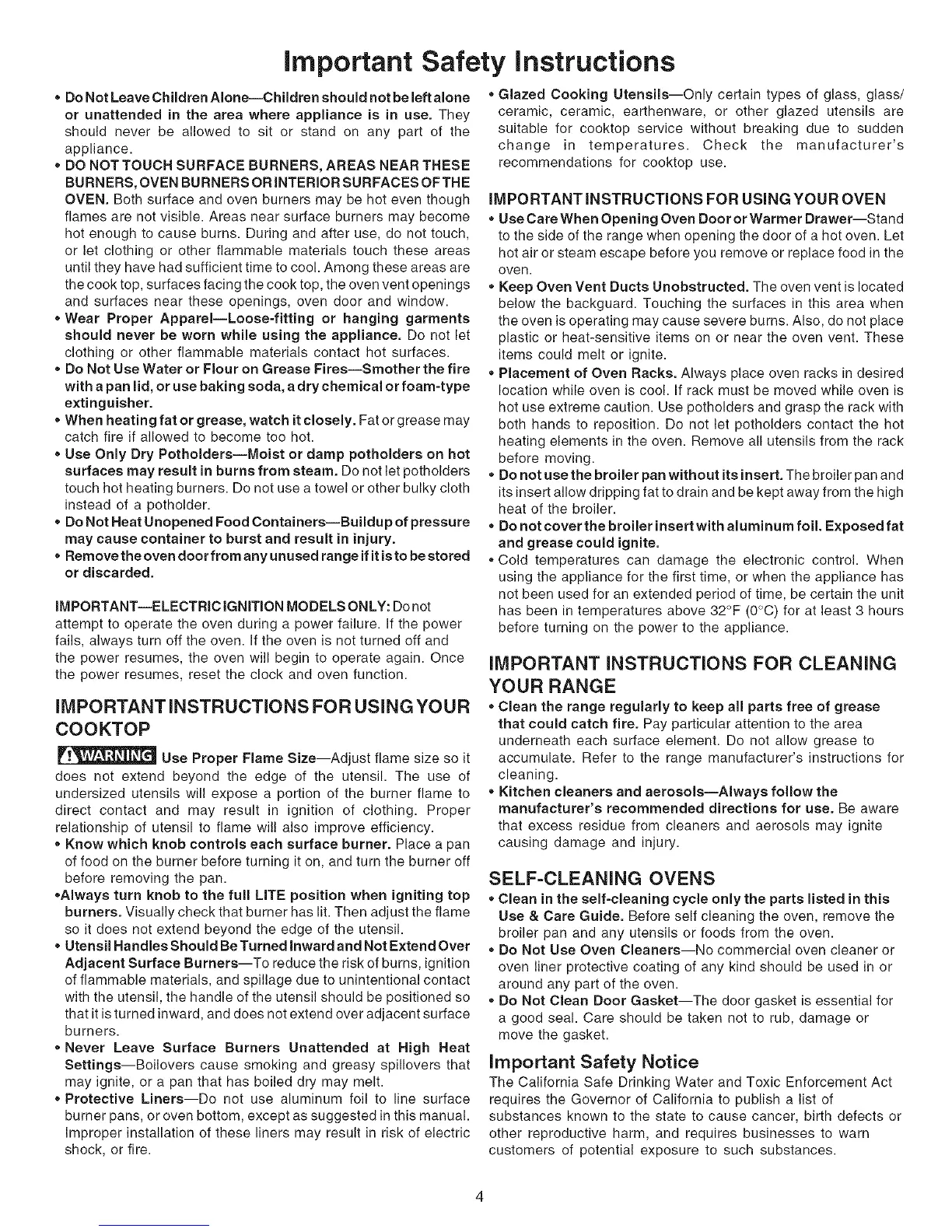 recommendations for cooktop use.