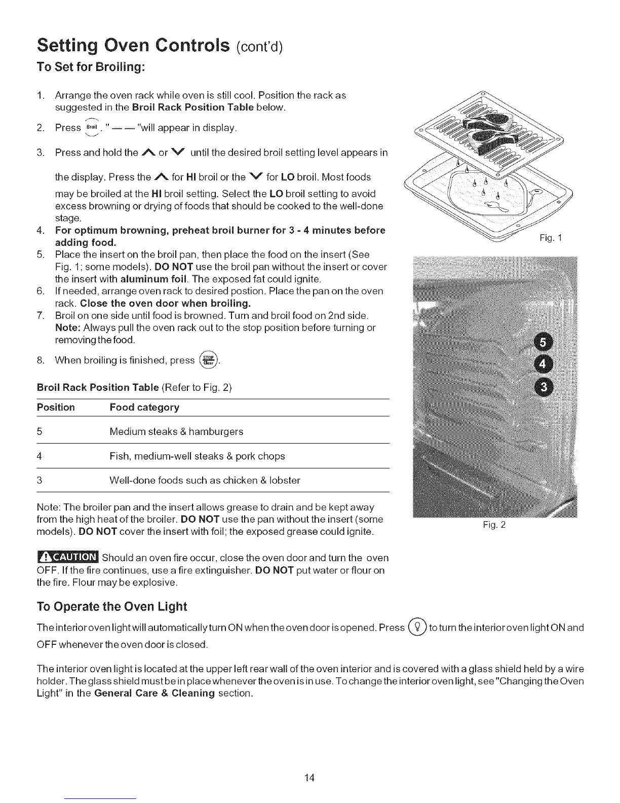 Fig. 1; some models). DO NOT use the broil pan without the insert or cover