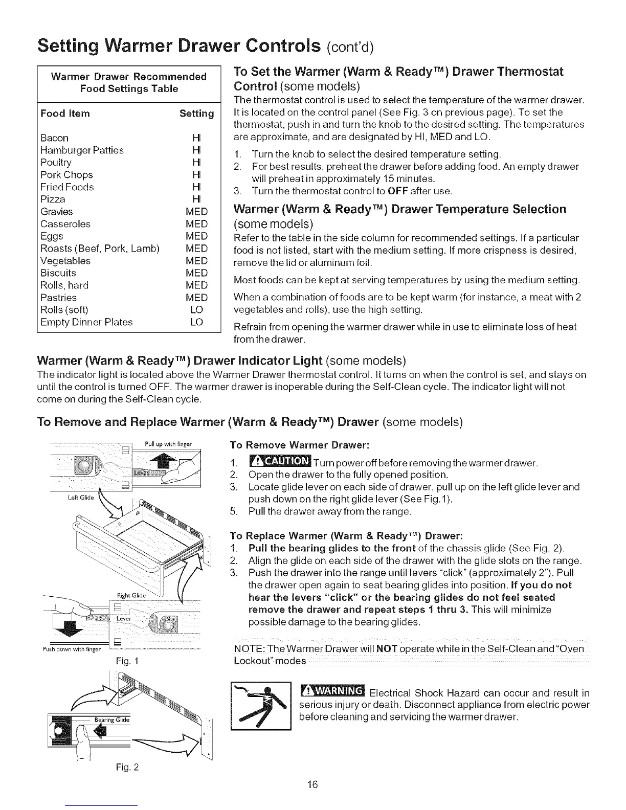 To Remove and Replace Warmer (Warm & Ready TM) Drawer (some models)