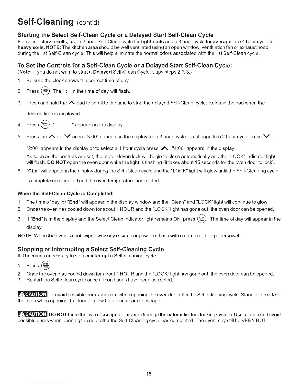 (Note: if you do not want to start a Delayed Self-Clean Cycle, skips steps 2 & 3.)