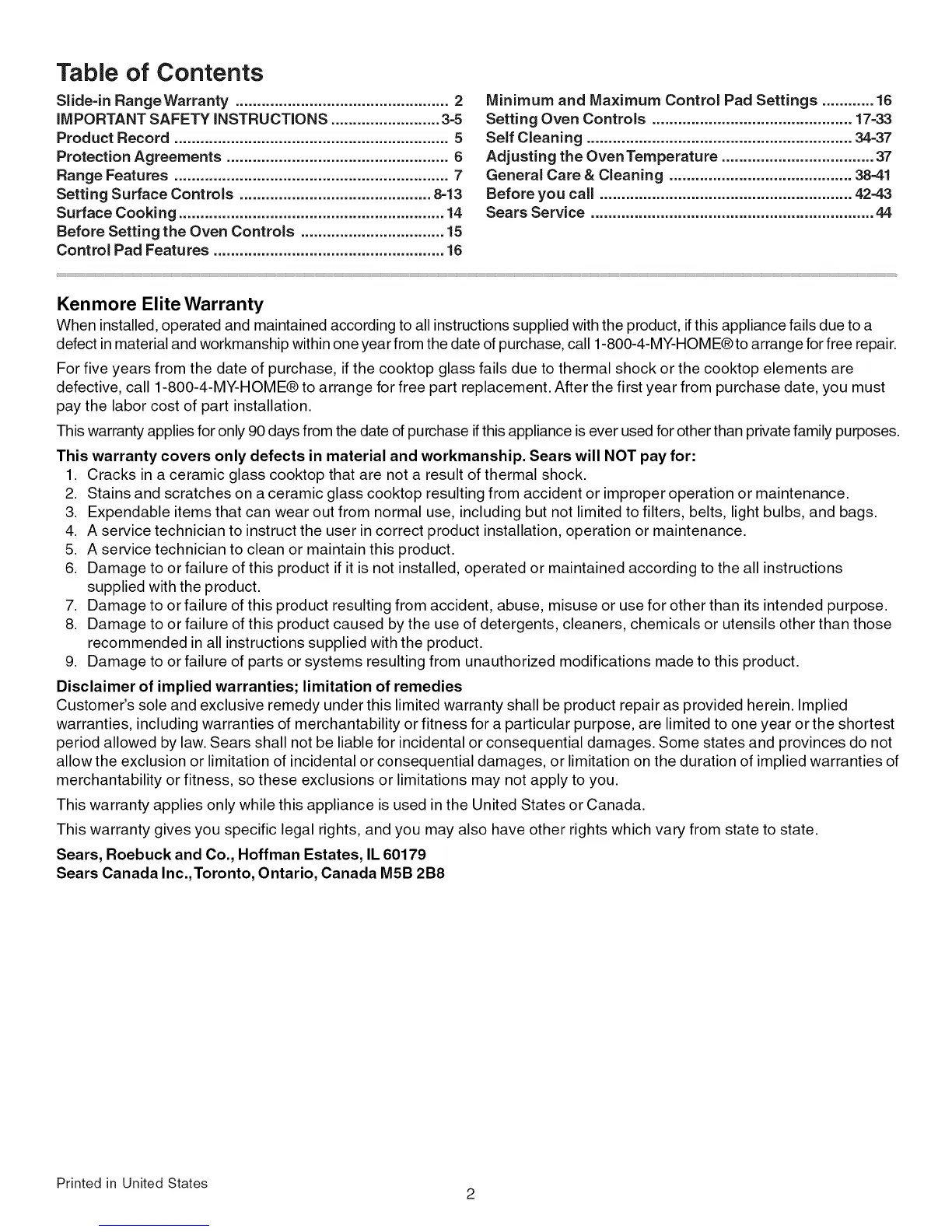 period allowed by law. Sears shall not be liable for incidental or consequential damages. Some states and provinces do not