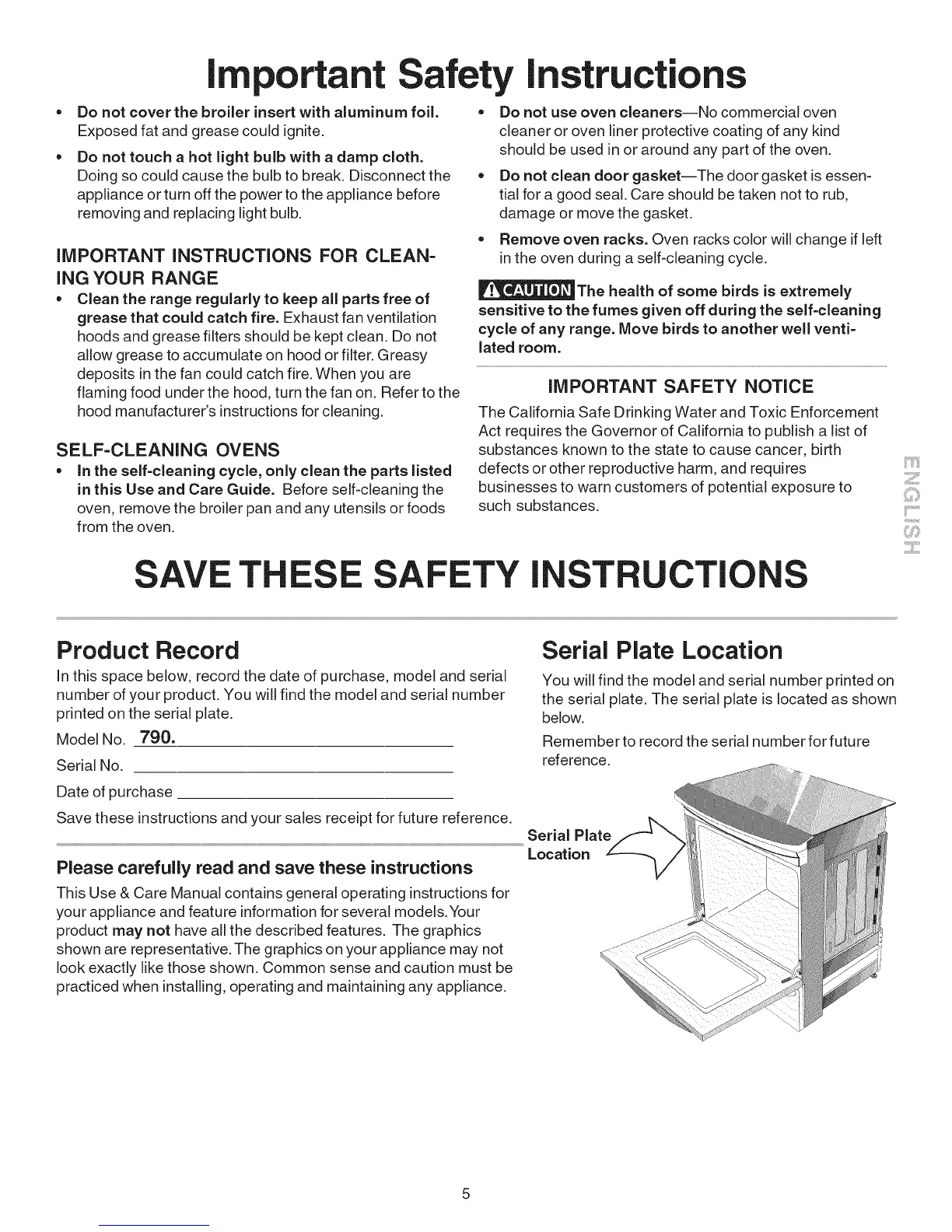 in this Use and Care Guide. Before self-cleaning the